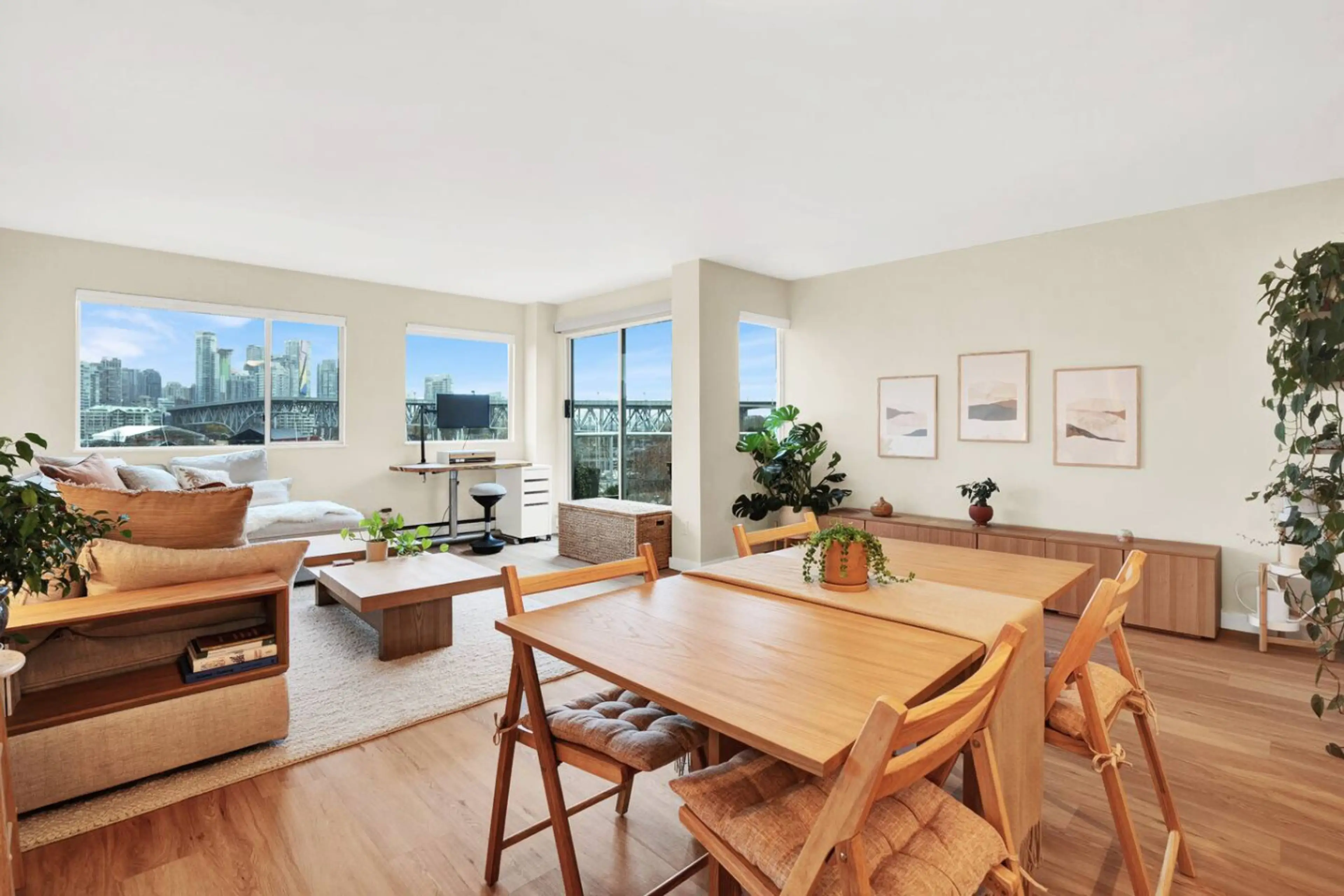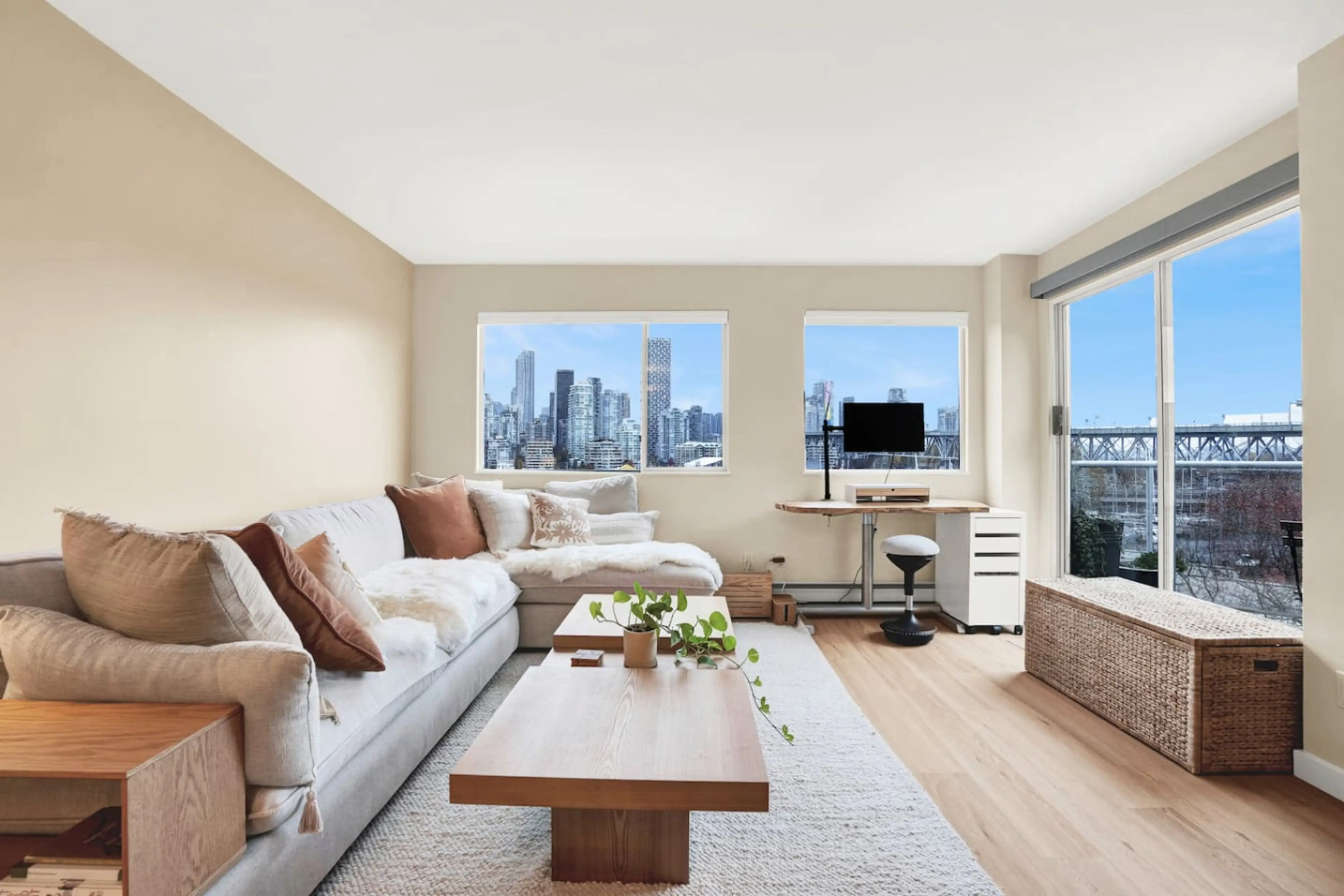 Experience a bright and stylish boho-chic 1BD steps from Granville Island. This cozy waterfront retreat features warm textures, soft colors, and modern décor. Newly renovated in 2025. Enjoy a peaceful bedroom, a relaxing living area, and beautiful light throughout the space. With balcony views an...